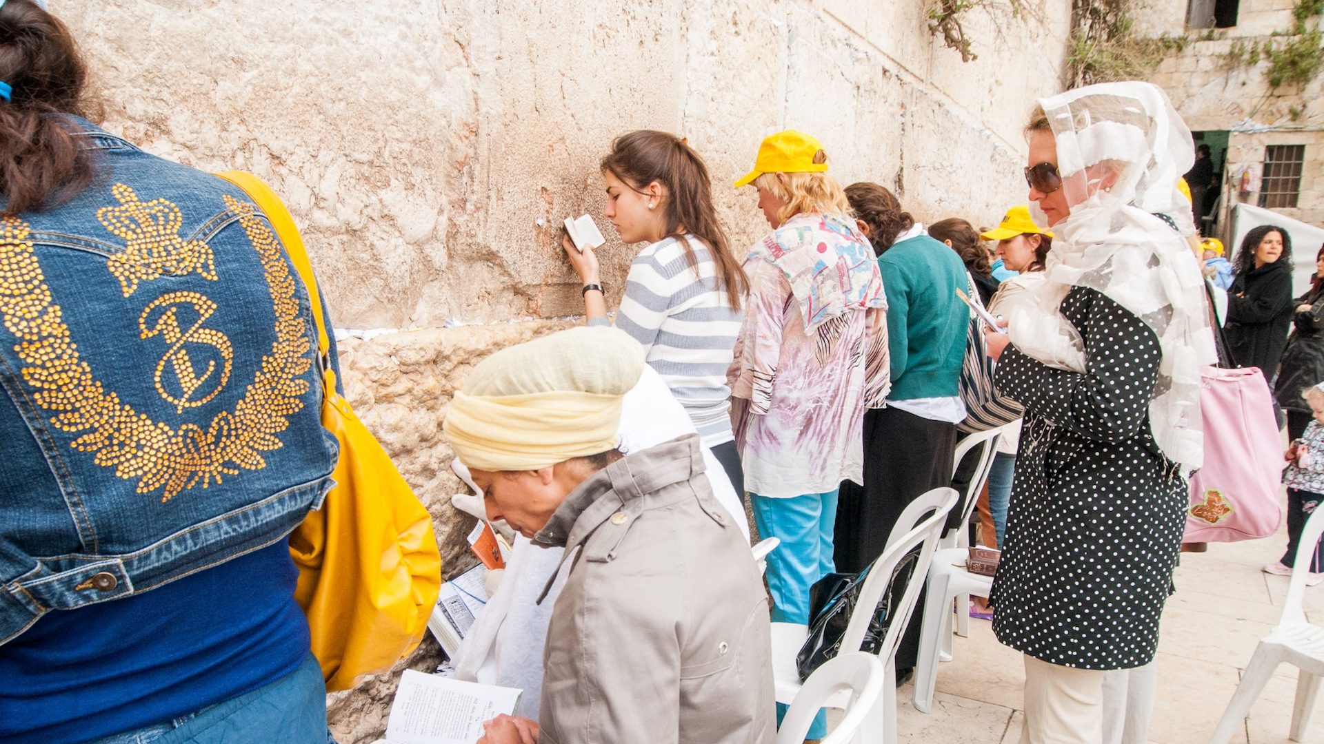 Many Jews feel the closest to God at the Kotel. After a security check and a ritual handwashing at the fountains, men proceed to the Wall via the left side of a partition and women to the right. Men adorn kippot, prayer shawls, and small, black boxes with portions of the Torah inside as they rock back and forth, bow, and cry out with earnest prayers. Women in prayer cover their heads, and some sit in chairs for hours reading from prayer books.